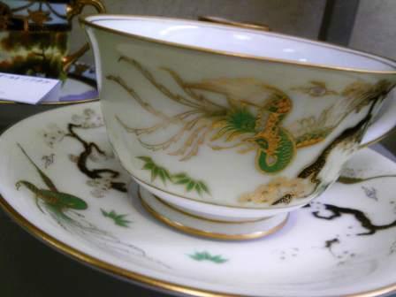 オールドノリタケと大倉陶園のものが所狭しと並んで