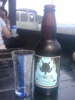 テラスでビール。